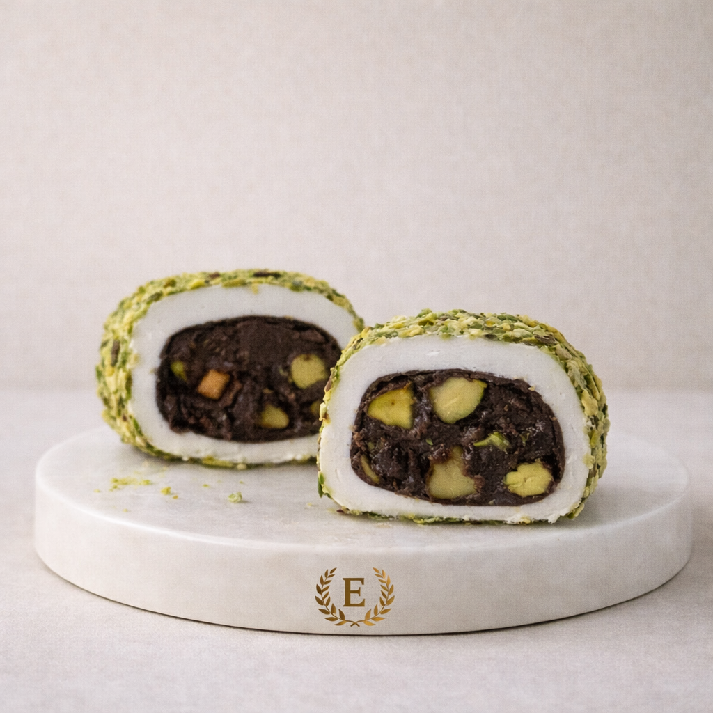 File Fıstık Kaplı Çikolatalı Fıstıklı Paşa Sarma Fitil Lokum