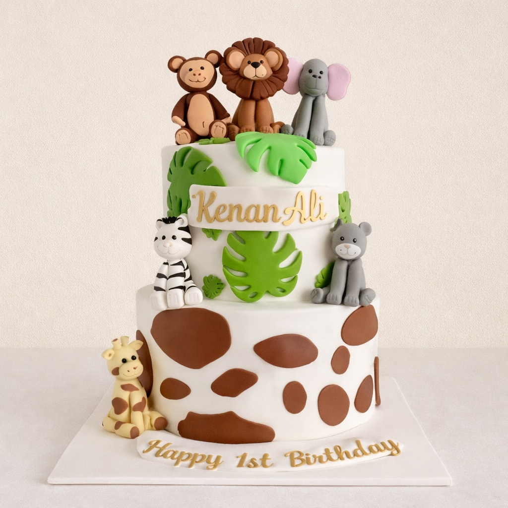 Safari Temalı Hayvan Figürlü Tasarım Pasta