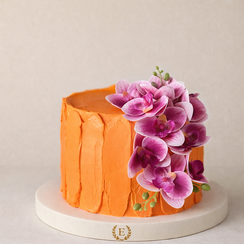 Taze Orkide Çiçekli Tasarım Pasta