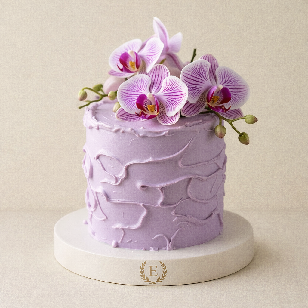 Taze Orkide Çiçekli Tasarım Pasta