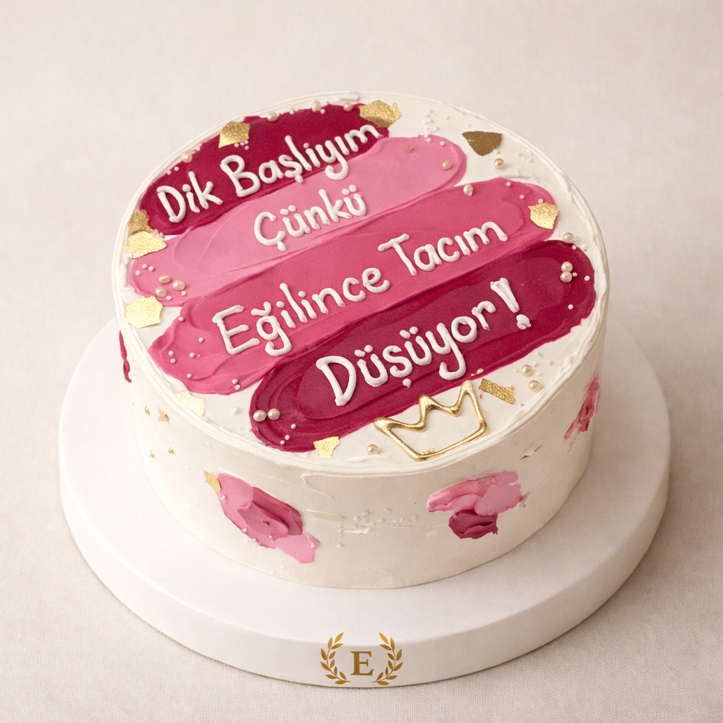 Dik Başlıyım Çünkü Eğilince Tacım Düşüyor Yazılı Pasta