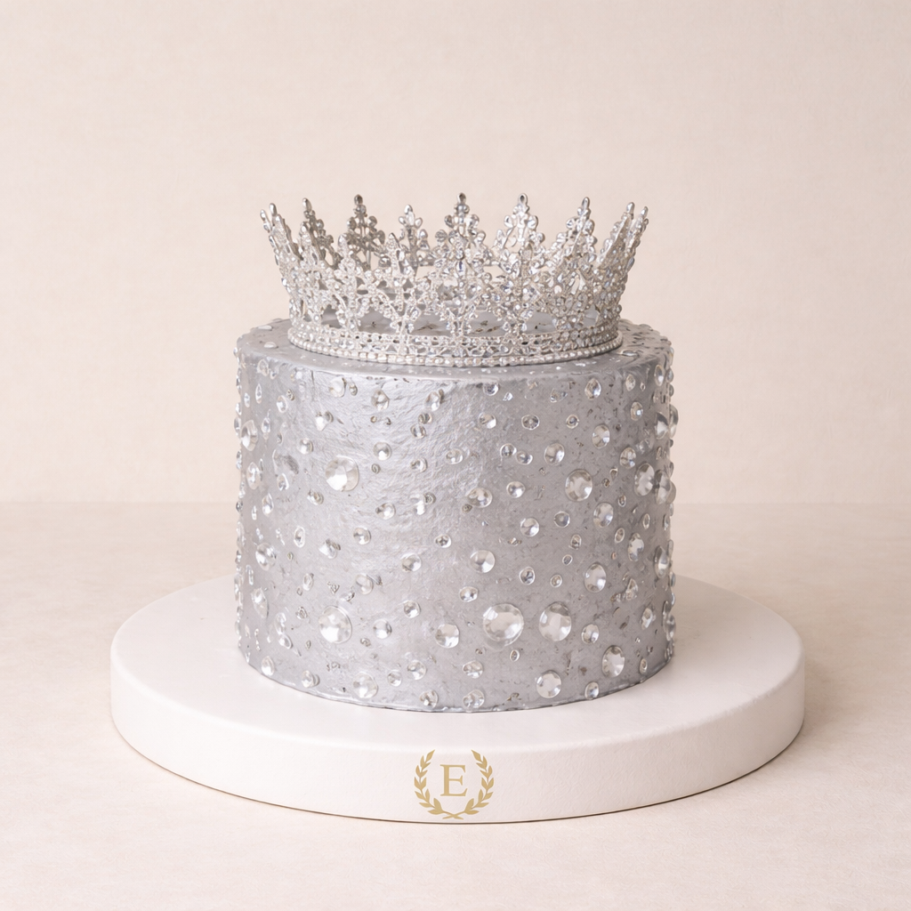 Taşlı Gümüş Silver Simli Taç Pasta